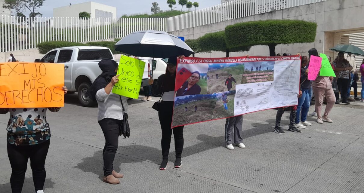 Xalapa, Ver.- Esta mañana, un grupo de personas se manifestaron frente a las instalaciones de la Fiscalía General del Estado (FGE), ubicadas en Arco Sur, para exigir justicia en un caso de invasión de terrenos que lleva más de siete años sin resolverse.
