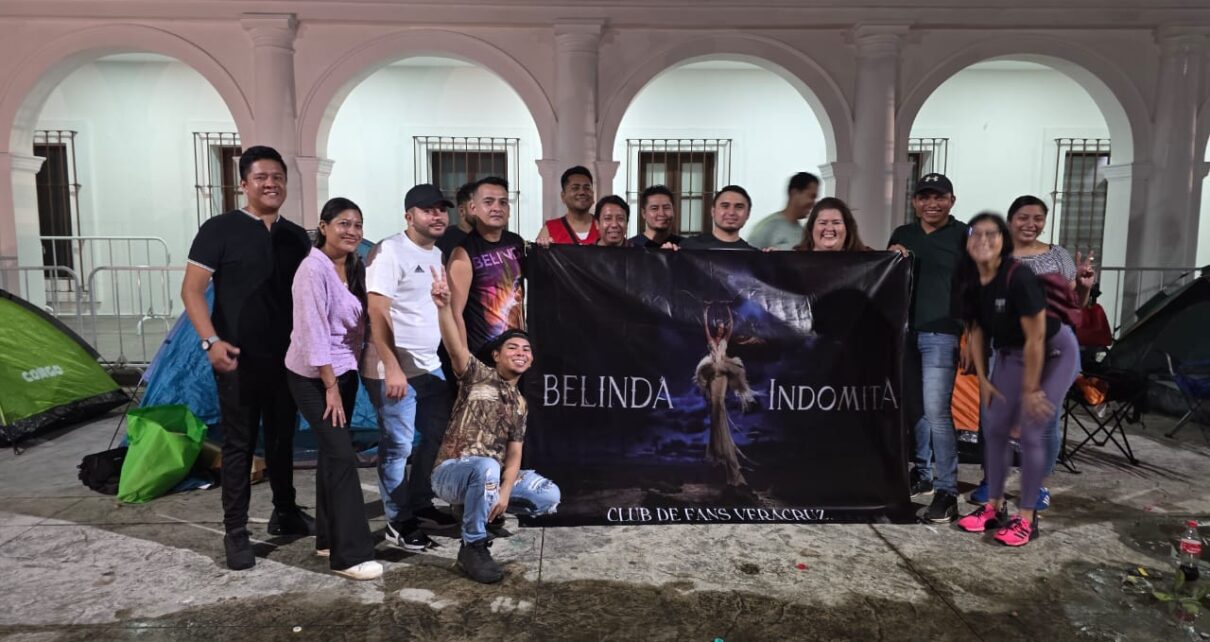 Boca del Río, Ver.- El Club de Fans oficial de Belinda en Veracruz acampó la noche de este jueves en los bajos del Palacio Municipal, para estar en primera fila durante su concierto que se realizará este viernes por la noche dentro de los festejos de las fiestas de Santa Ana.