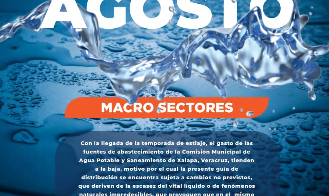Con la llegada de la temporada de estiaje, el gasto de las fuentes de abastecimiento de la Comisión Municipal de Agua Potable y Saneamiento de Xalapa, tienden a la baja, motivo por el cual se tiene un calendario de distribución que puede estar sujeto a cambios no previstos, que deriven de la escasez del líquido o de fenómenos naturales impredecibles, que provoquen que en el mismo día se realice el tandeo del servicio entre parte alta y baja.