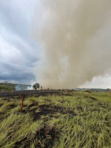 En la zona se observaban varias llamas de fuego por todas partes, consumiendo el pastizal.