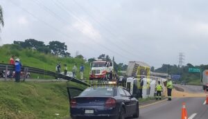 Córdoba, Ver.- La tarde de este domingo se registró un accidente donde un vehículo pesado se volcó sobre los camellones centrales de la carretera Córdoba – Boca del Río.