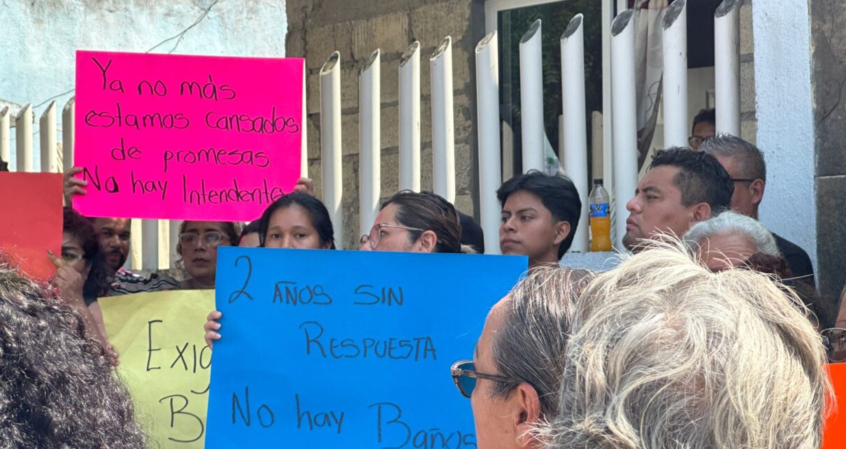 Los quejosos denunciaron que desde hace meses la fosa séptica colapsó y solo trabaja al 30 por ciento, por si fuera poco, únicamente dos baños funcionan y estos dan servicio a 300 alumnos y más de 25 docentes y personal administrativo.