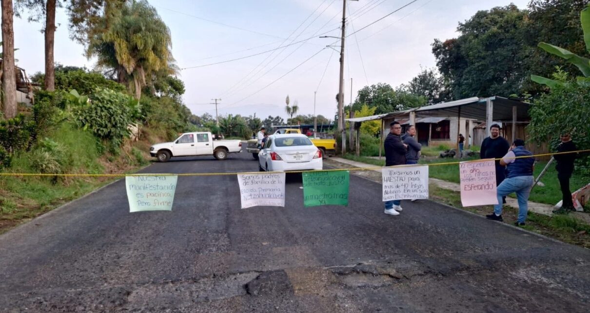 Xalapa, Ver.- Padres de familia de la Escuela Primaria “Nezahualcóyotl”, ubicada en la comunidad de Ohuapan, municipio de Tlaltetela, bloquearon esta mañana la carretera estatal Totutla-Xalapa como medida de protesta ante la falta de un docente en el plantel.
