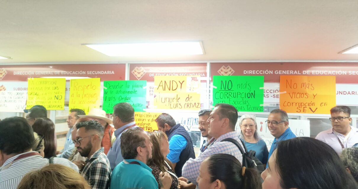 Integrantes de la sección 32 del SNTE en Veracruz, se encuentran manifestándose en las oficinas centrales de la Secretaría de Educación de Veracruz (SEV), en las oficinas de la subdirección de escuelas técnicas, para impedir el acceso al subdirector y personal que labora en ella.