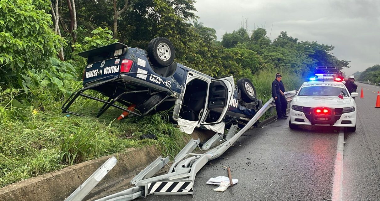 Las Choapas, Ver.- La mañana de este viernes 19 de septiembre una patrulla de la Secretaría de Seguridad Pública (SSP) volcó en el municipio de Las Choapas cuando se dirigía a Cosoleacaque para participar en la Mesa Regional de Coordinación de la Paz
