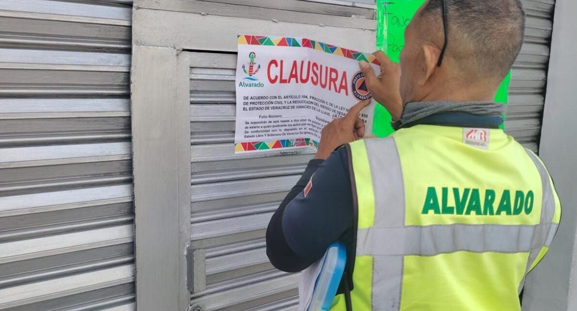 Alvarado, Ver.- Debido a fallas en la estructura de los inmuebles donde se encuentran instalados Banco Azteca y Elektra en el municipio de Alvarado y, tras los diversos requerimientos del Ayuntamiento que han sido pasados por alto por el personal administrativo, elementos de Protección Civil clausuraron parcialmente las mencionadas empresas.