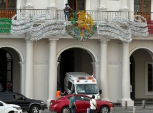 Xalapa, Ver.- Un trabajador cayó al interior del palacio de Gobierno de una altura de seis o siete metros, cuando realizaba labores en la remodelación del inmueble en materia de iluminación