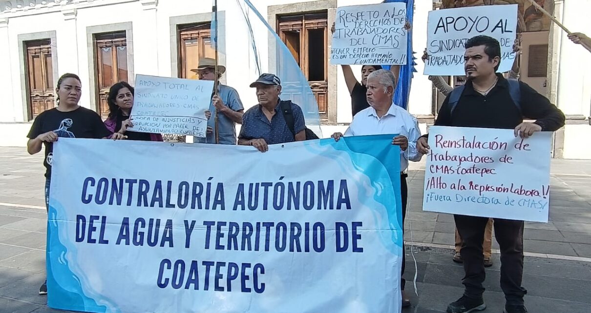 Xalapa, Ver.- Integrantes de la Contraloría Autónoma del Agua y Territorio de Coatepec denunciaron el despido injustificado de 15 trabajadores sindicalizados de la Comisión Municipal de Agua y Saneamiento (CMAS), por lo que se manifestaron frente al Palacio Municipal de Coatepec.