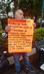 Un grupo de prestadores de servicios administrativos se manifestó este viernes a un costado de Palacio de Gobierno para solicitar el apoyo de la gobernadora Norma Rocío Nahle García, luego de que —según denunciaron— fueron retirados de sus funciones mediante una carta poder simple, lo que les ha impedido seguir desempeñando su trabajo.