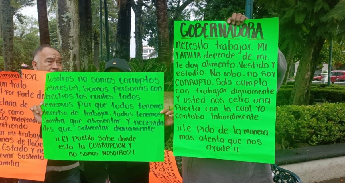 Xalapa, Ver.- Denuncian que fueron retirados de sus funciones mediante una carta poder simple y exigen diálogo para recuperar su fuente de ingresos.