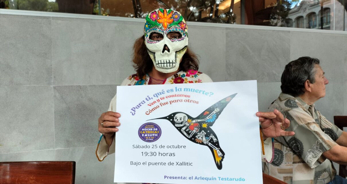 La actriz, narradora oral y clown Yuyi Pozos anunció la presentación de su espectáculo “El Arlequín Testarudo”, un performance que mezcla arte, reflexión y sensibilidad social, el próximo sábado 25 de octubre a las 19:30 horas, en los bajos del Puente de Xallitic, como parte de las actividades de la Noche de Catrinas Xallitic.