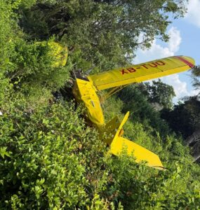 Chacaltianguis, Ver.- Una avioneta amarilla utilizada para labores de fumigación del ingenio San Cristóbal se desplomó la mañana de este lunes 1 de diciembre en la comunidad de Torno Largo, municipio de Chacaltianguis.