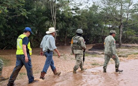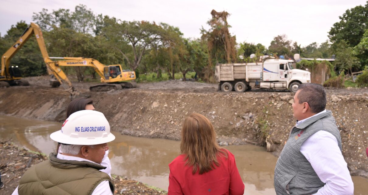 Poza Rica, Ver.- Durante su gira de trabajo en Poza Rica, la gobernadora Rocío Nahle García, acompañada de la presidenta municipal electa Adanely Rodríguez Rodríguez, supervisó las labores de dragado, desazolve y conformación de taludes en el afluente que atraviesa la colonia Floresta y desemboca en el río Cazones.