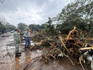 Desde las primeras horas de este día, brigadas de auxilio respaldadas por maquinaria pesada y camiones de volteo trabajan en los puntos críticos de la comunidad. El objetivo principal es la liberación de los accesos principales, los cuales se encontraban bloqueados por el arrastre de lodo, sedimentos y escombros.