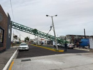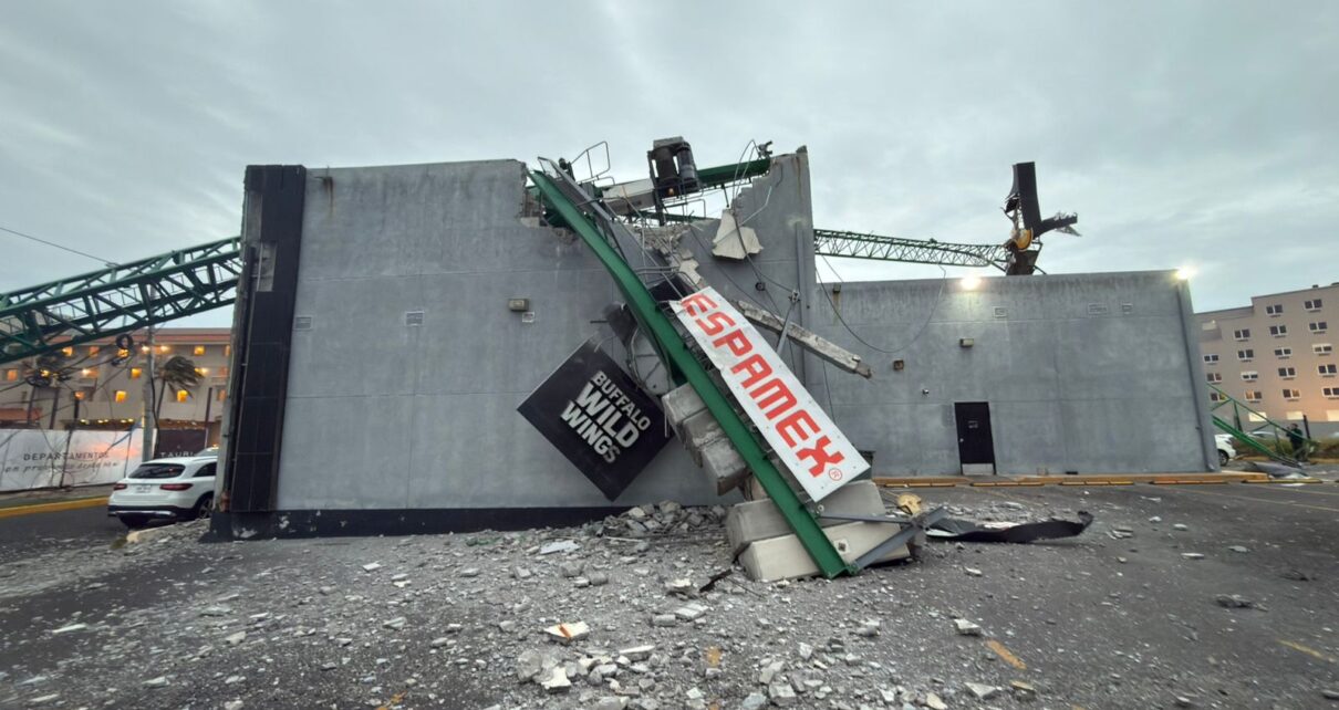 Veracruz, Ver.- Tras varias alertas de la ciudadanía en redes sociales debido a las fuertes rachas de viento que está generando el Frente Frío número 25, finalmente una grúa de construcción colapsó y cayó sobre un comercio en el municipio de Boca del Río.