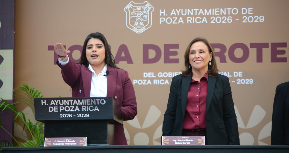 Poza Rica, Ver.- En el marco del relevo de administraciones en los 212 ayuntamientos de Veracruz, la gobernadora Rocío Nahle García asistió a la Sesión Solemne de Cabildo en la que Janeth Adanely Rodríguez Rodríguez rindió protesta de ley como Presidenta Municipal Constitucional de Poza Rica para el periodo 2026–2029 y refrendó el respaldo total del Gobierno del Estado para la recuperación, reconstrucción y desarrollo del municipio.