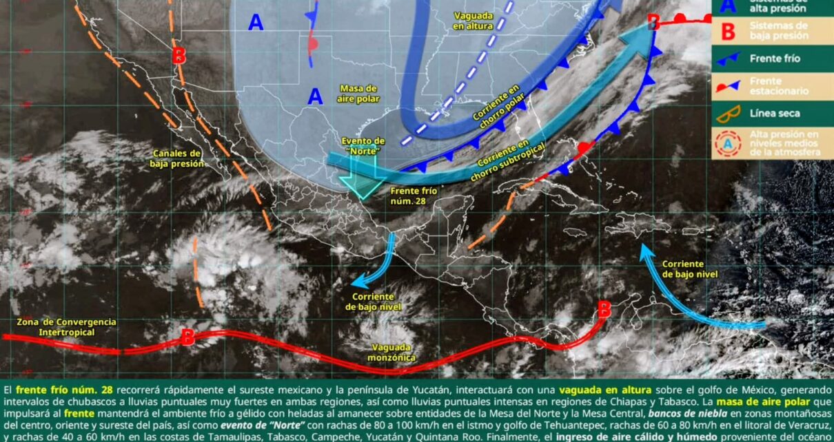 Xalapa, Ver.- La jefa del Departamento de Hidrometeorología de la Comisión Nacional del Agua (CONAGUA), Jessica Ivette Luna Lagunes, informó que durante la madrugada de este jueves se registraron fuertes rachas de viento del norte en distintas regiones del estado de Veracruz, como efecto del Frente Frío número 28.