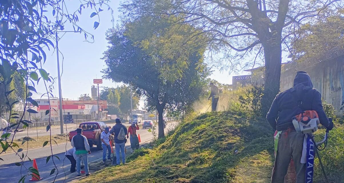 * Ya iniciaron los trabajos de chapeo y limpieza general de camellones y laterales las cuadrillas de la Junta de Mejoras y de la dirección de Servicios Generales.