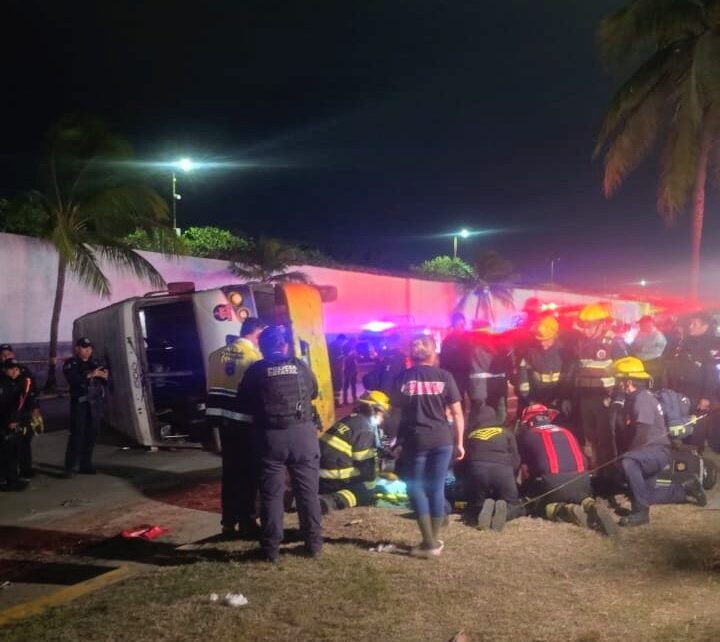 Veracruz, Ver.- Varias personas resultaron lesionadas, entre ellos una niña de un año de edad, tras volcarse la unidad 171 de la ruta Costera – Lomas 4, en la curva del bulevar Fidel Velázquez, al norte de la ciudad de Veracruz.