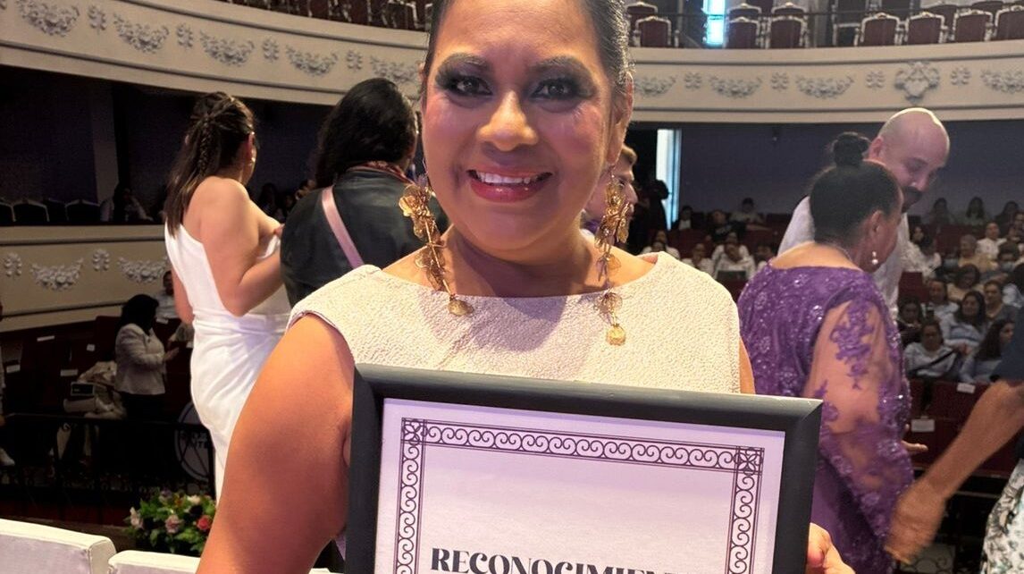 En el marco del Foro Internacional de Mujer 2026, realizado en el emblemático Teatro Francisco Javier Clavijero, donde la llamada “Voz de Oro” fue condecorada por su exitosa trayectoria artística ante las Diplomáticas de Palestina, Jamaica, Honduras, Sudáfrica, Perú y la Embajadora de la Paz Mundial por la Organización de las Naciones Unidas (ONU), María del Carmen González Camacho.