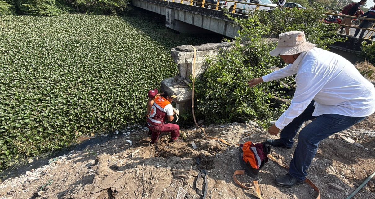 Medellín de Bravo, Ver.- Elementos de Protección Civil del municipio de Medellín de Bravo rescataron a un cachorro que había sido abandonado y tirado en el Arroyo Moreno, mismo que se encontraba Atrapado entre el lirio.