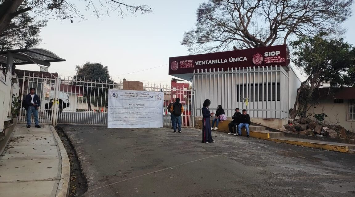 Xalapa, Ver.- Integrantes del Sindicato de Empleados del Poder Ejecutivo de Veracruz tomaron las instalaciones de la Secretaría de Infraestructura y Obras Públicas (SIOP) ante la falta de respuesta por parte de las autoridades a sus demandas laborales, principalmente el reconocimiento de trabajadores de base y el cumplimiento de laudos emitidos a su favor.